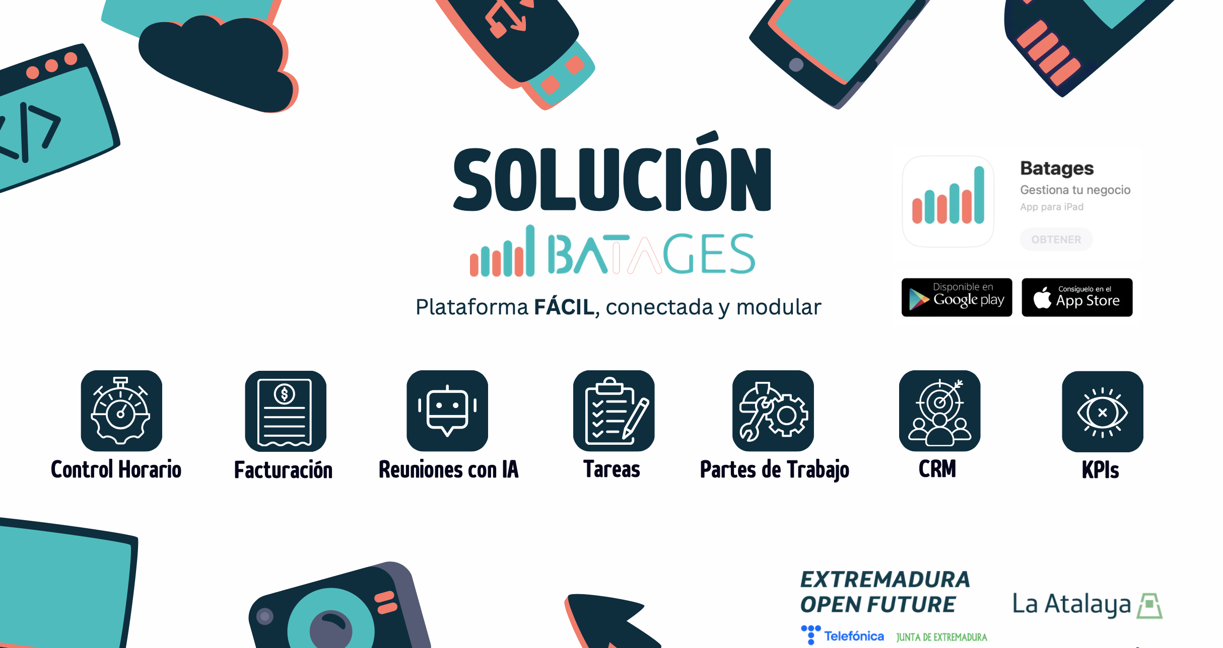 BATAGES es una app, también disponible en el navegador, de fácil manejo para gestionar empresas, facturación, registro de jornada, tareas, reuniones y mucho más.